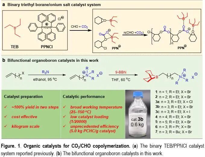 今天给大家分享一篇近期发表在J.Am.Chem.Soc.的文章“Scalable bifunctional organoboron catalysts for copolymerization of CO2 and epoxides with unprecedented efficiency”通讯作者是来自浙江大学的伍广鹏教授。